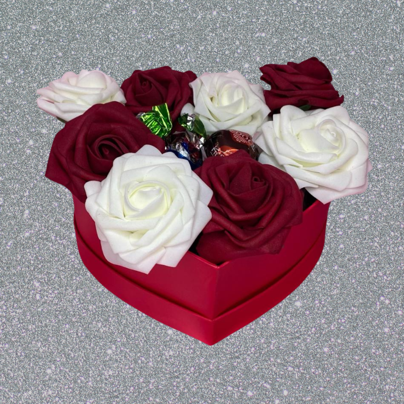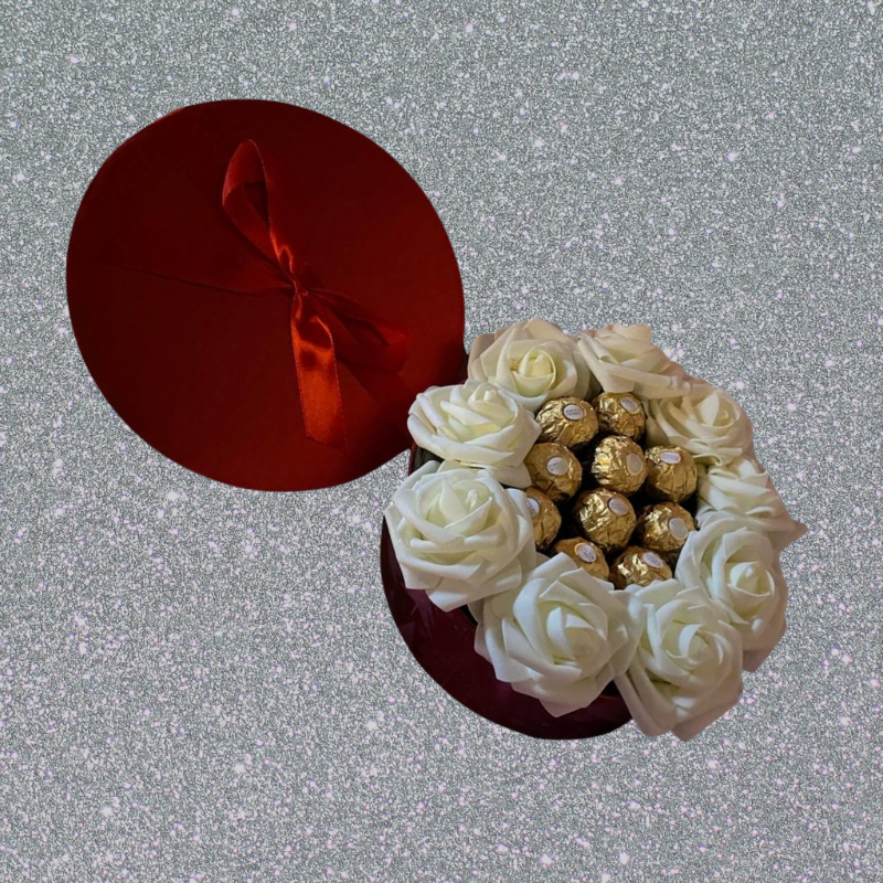 - Confection 100 % artisanale : Chaque détail est minutieusement travaillé, des roses qui décorent la box aux chocolats gourmands qu’elle contient.